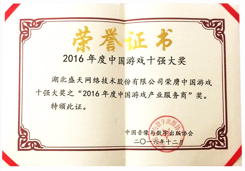 • 2016年度中國游戲十強(qiáng)