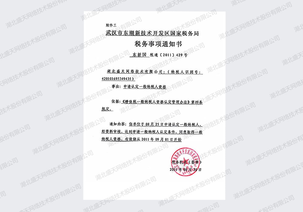 • 稅務(wù)事項(xiàng)通知書