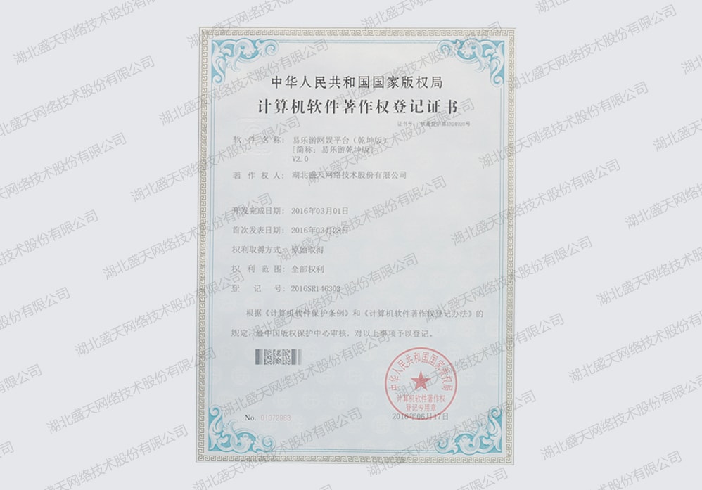• 計(jì)算機(jī)軟件著作權(quán)登記證書