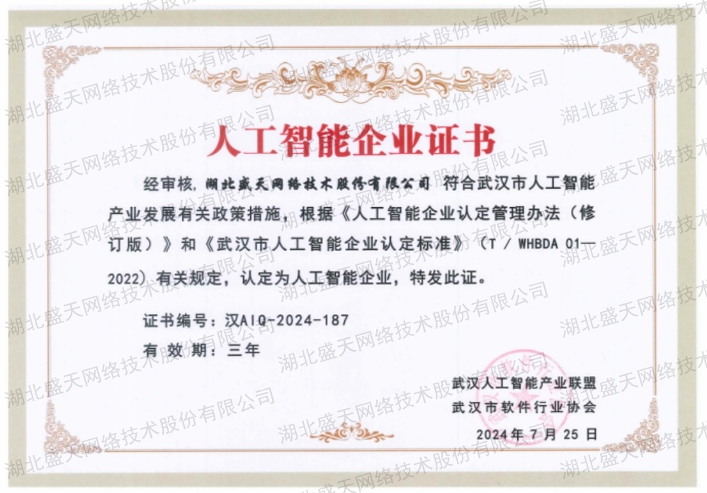 • 人工智能企業(yè)證書