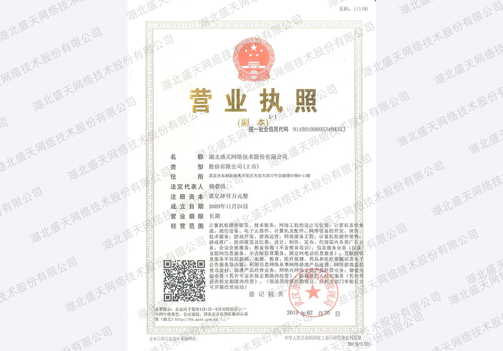 • 盛天網(wǎng)絡(luò)營業(yè)執(zhí)照